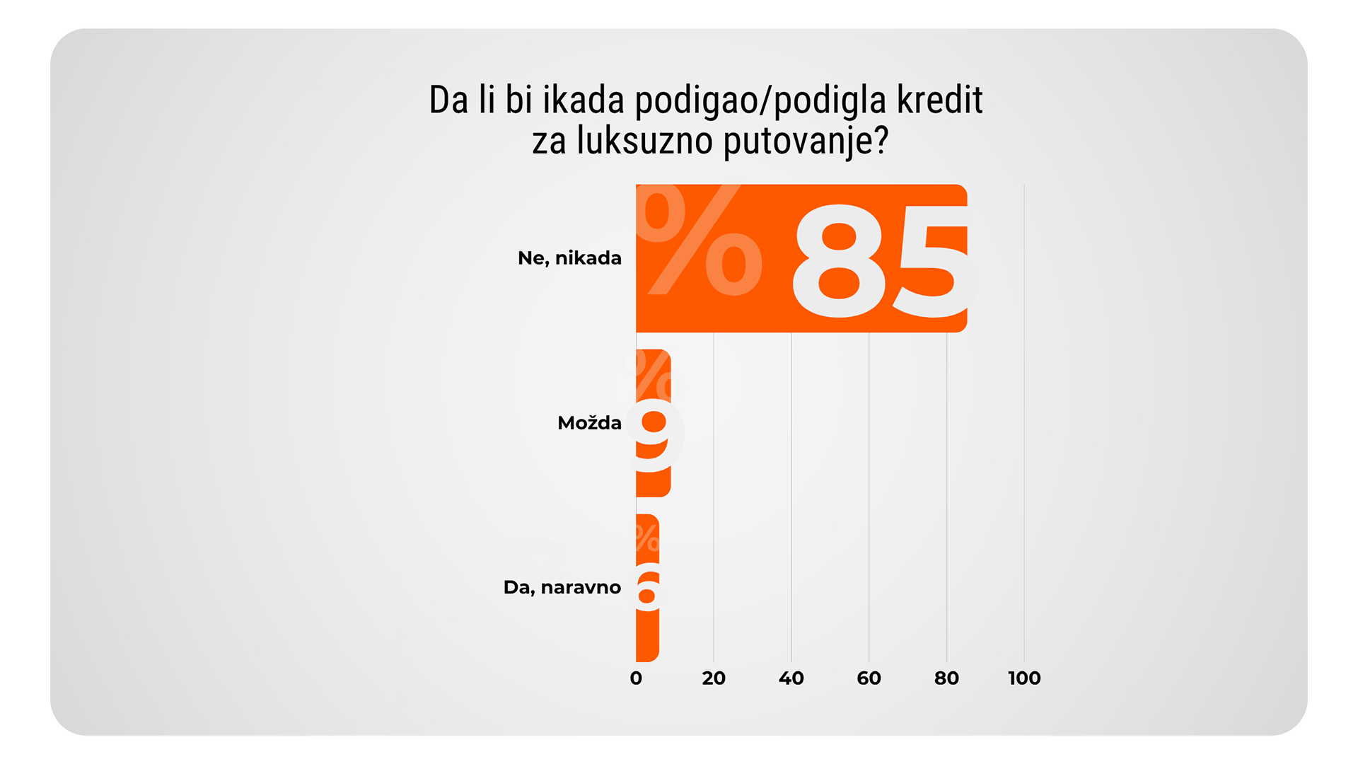 Većina građana smatra da kredit treba koristiti za dugoročne investicije – kupovinu stana, automobila, renoviranje doma ili ulaganje u posao. Putovanje, bez obzira na to koliko lepo i nezaboravno bilo, posmatra se kao trošak koji nestaje u trenutku kad avion sleti nazad kući.