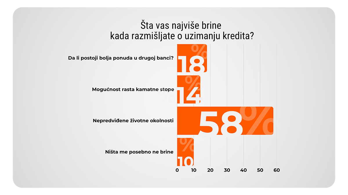 Promenljive kamatne stope i nestabilno ekonomsko okruženje i dalje su relevantan faktor. Iako je ovaj strah manje zastupljen, on i dalje utiče na deo građana pri odabiru kreditnog proizvoda.